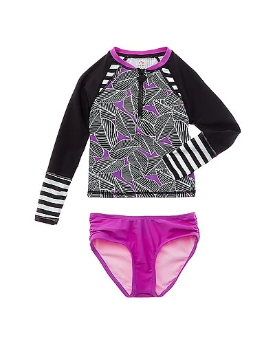 - Design details: raglan sleeve rashguard and accompanying slip-on bottom