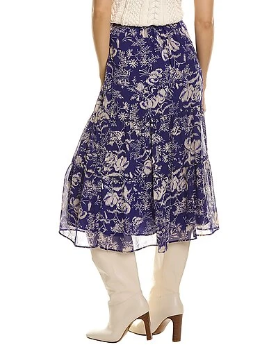 - Tiered Midi Skirt in purple with ruffle hem