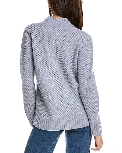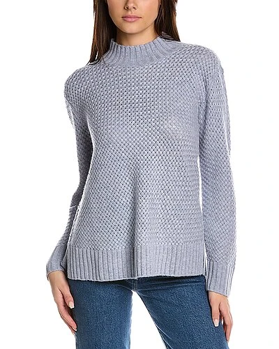 - Basket Weave Wool & Cashmere-Blend Pullover in sleet with high-neck, dropped-shoulder sleeves, ribbed trim and side slits at hem