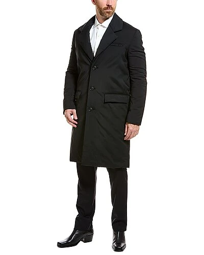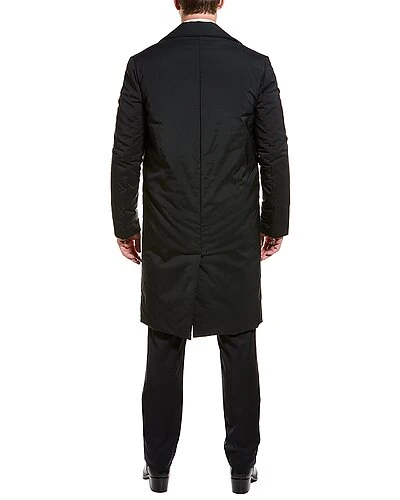 - Coat in black with notch collar, left chest pocket, two front pockets, and center vent at back hem