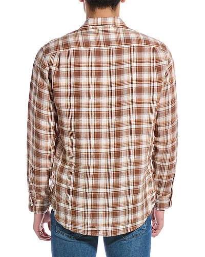 - Brookville Linen Button-Down Shirt in white and brown combo with point collar, button cuffs, and single chest pocket