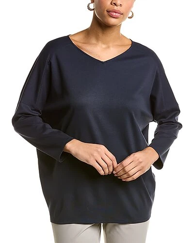 - Calista Top in ink with V-neck and dropped-shoulder sleeves