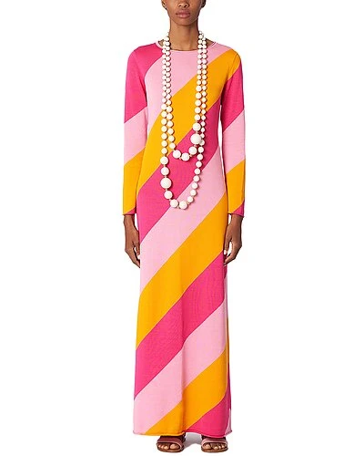 - Diagonal Stripe Silk-Blend Maxi Dress in pink multicolor