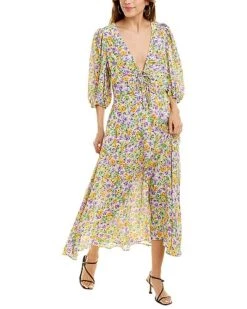 - Design details: V-neck with drawstring detail, elbow-length puff sleeves and dual side seam pockets
