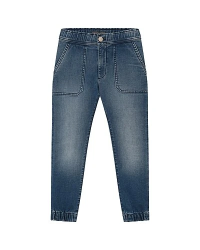 - Design details: Lara is relaxed, jogger inspired fit with an elastic waist and hem detail for a sporty, causal look. It features a zip fly closure and patch pockets on the front and back body.