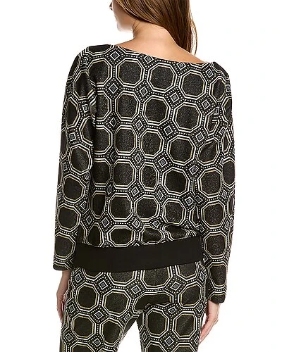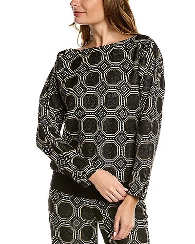 - Easy Going Top in metallic with jacquard design, boatneck, and blouson waist