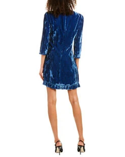 - Design details: surplice front, smocked waist, 3/4-length puff sleeves, and ruffle hem