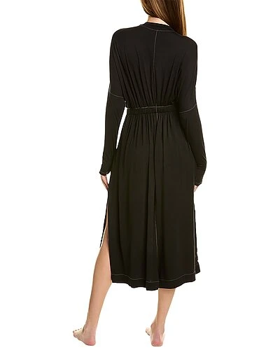 - Essential Cardi Robe in black with dropped-shoulder sleeves, self-tie waist sash and side slits at hem