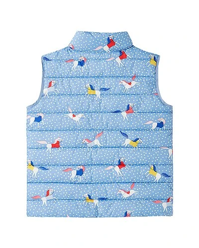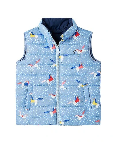 - Design details: recycled faux down wadded, reversible gilet, zip guard