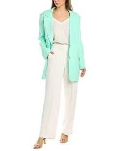 - Kira Blazer in mint with notch lapel, dual front pockets, button cuffs, and vented back hem