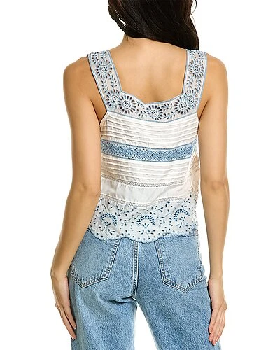 - Breccan Tank in ivory shores with embroidered eyelet and pintuck details