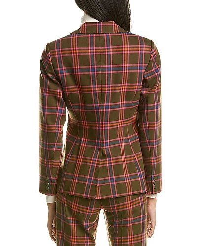 - Perfection Jacket in brown multicolor with notch lapel, two front pockets, button cuffs, and center vent at back hem