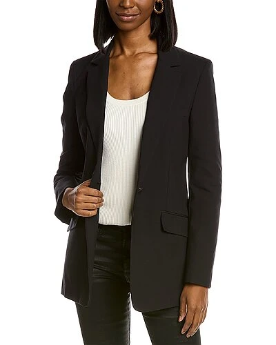 - Ames Blazer in black with notch lapel, left chest pocket, two front pockets, button cuffs, and center vent at back hem