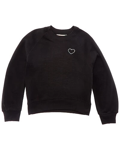 - Heart Sweatshirt in black with crewneck, raglan sleeves and embroidered heart