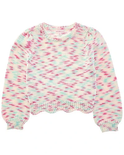 - Scalloped Sweater in super pink combo with ribbed trim and scalloped hem
