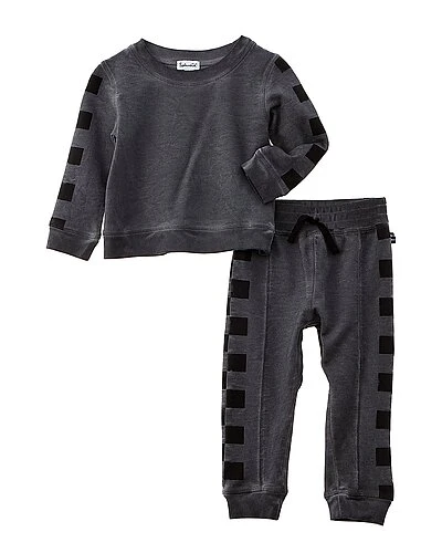 - 2pc Checkered Pullover & Pant Set in shade with graphic sweatshirt and accompanying drawstring waist jogger pant