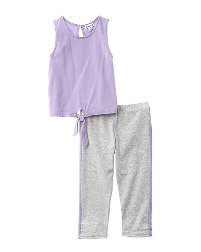 - 2pc Sport Tie-Front Top & Legging Set in frost amethyst with tank with self-tie front hem and accompanying legging with side stripes