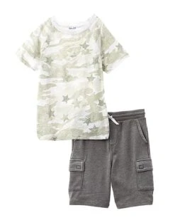 - 2pc Star Camo T-Shirt & Short Set in ice grey heather with printed t-shirt and accompanying drawstring cargo short