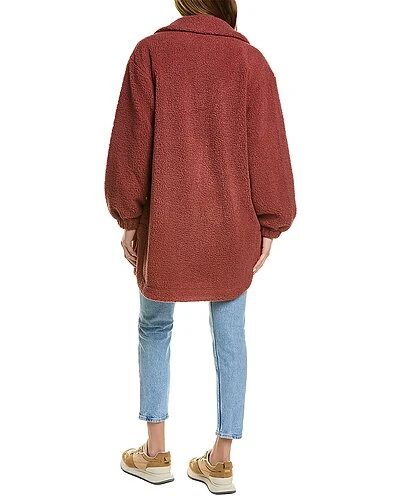 - Boucle Teddy Jacket in penny with front patch pockets and shirttail hem