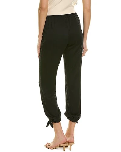 - Chelsea Tie Pant in black with elasticized waist, pleated front, dual front pockets and self-tie cuffs