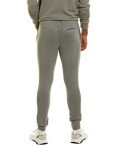 - Sporty Jogger in gunmetal with elasticized waistband, bungee cord drawstring, two front pockets, and right back pocket