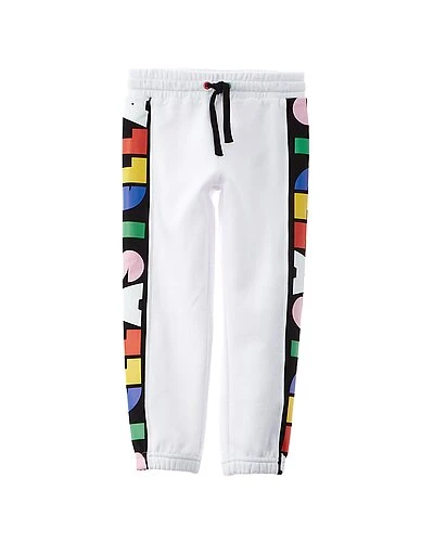 - Tape Jogger Pant in white with elasticized drawstring waist and logo taping down sides