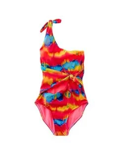 - Design details: self-tie one-shoulder neckline and self-tie waist detail