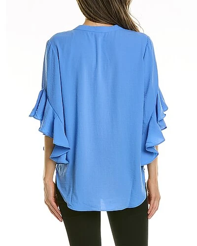 - Ruffle Sleeve Blouse in blue jay with split neckline, pintuck detailing and ruffle sleeves