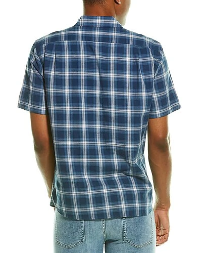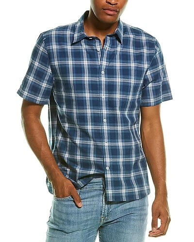 - Classic Fit Moonlit Shadow Plaid Shirt in blue with spread collar and left chest pocket