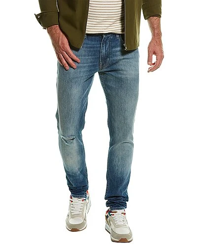 - Zack Skinny in del mar with belt loops, whiskering and fading details, distressed right knee, and classic five-pocket styling